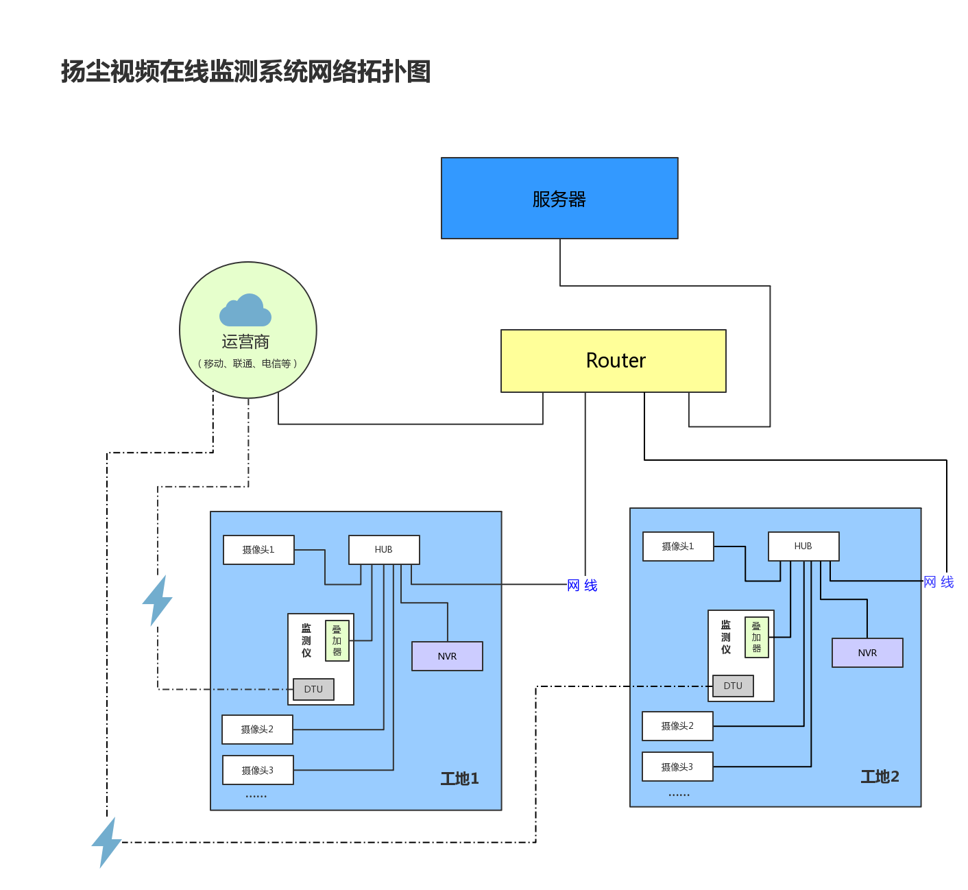下图为扬尘视频在线监测系统网络拓扑架构框图: