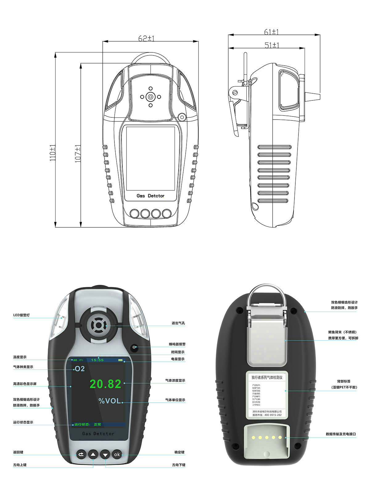 ☆ 专用款独行者系列手持式气体浓度检测仪可选配带温度检测和补偿,检测数据更准确;