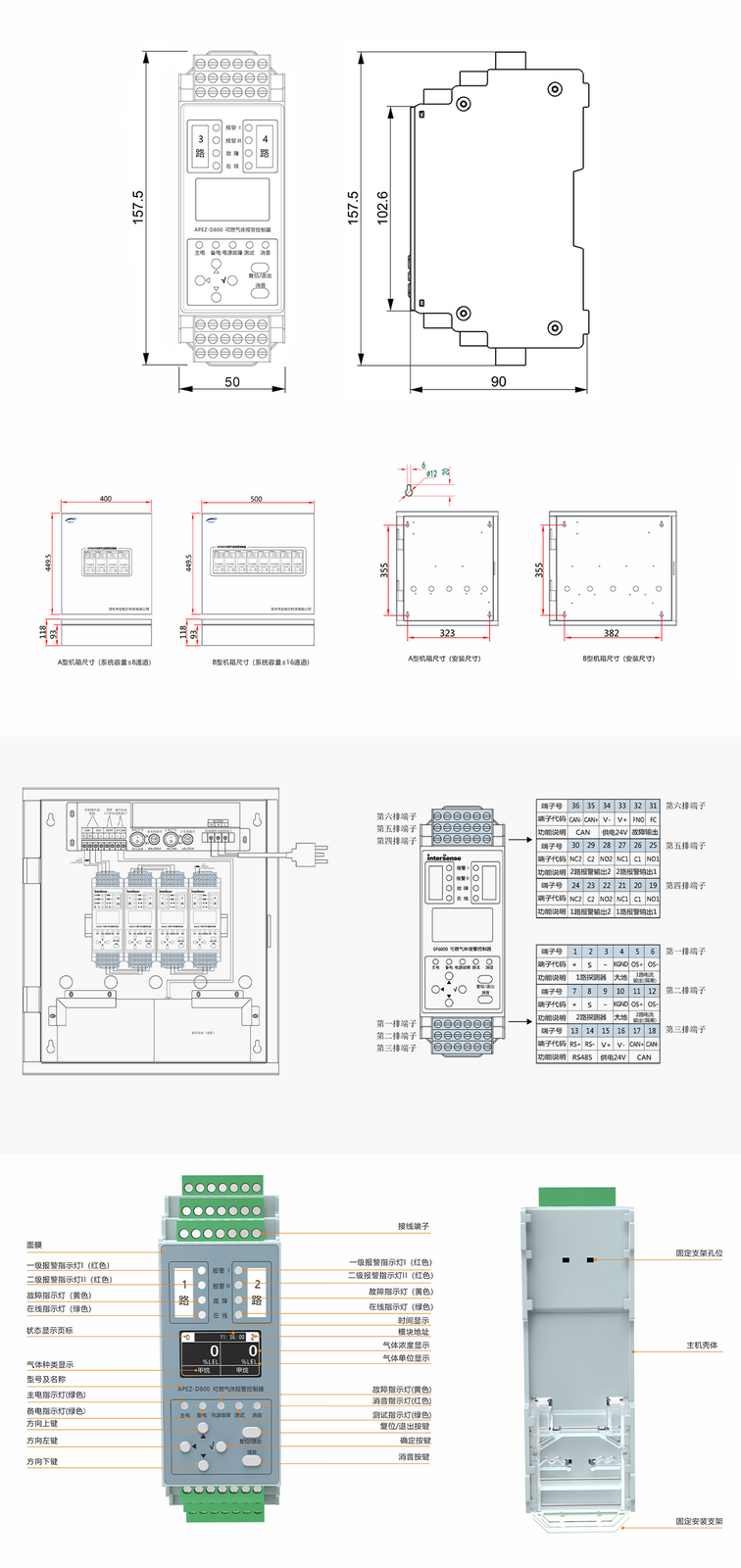 核心特点:独立单元设计、模块化设计、配置灵活、分级报警及控制、多通道输出、OLED液晶显示器