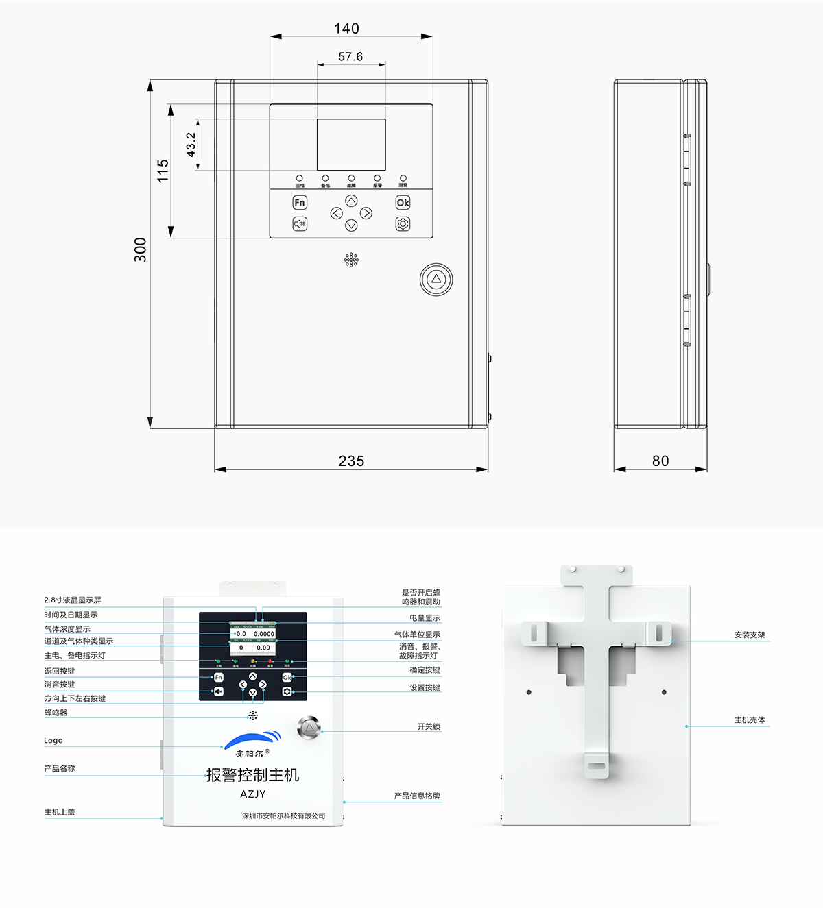 产品简介:AAQF前锋系列简易报警控制主机是安帕尔公司为了应对中低端市场开发的一款功能实用,性价比高、操作便捷的报警控制主机。采用ARM32位微处理器技术作为控制单元,2.8寸彩色液晶显示屏使用界面,8位操作按键;支持采集各类氟利昂R123检测仪(或其它检测仪)等8组检测浓度有线信号;支持RS485输出;4组继电器接口,用于控制风机、电磁阀和数据上传使用;用户可选RS485、TCP/IP网口通信或者NB-IOT、4G、5G等无线通讯方式。现场主要采用壁挂式安装,适合多种应用场景。该产品可广泛应用于石油、化工、电力、医疗、矿业等领域,集数据采集、显示、报警、输出和控制等功能于一体;...