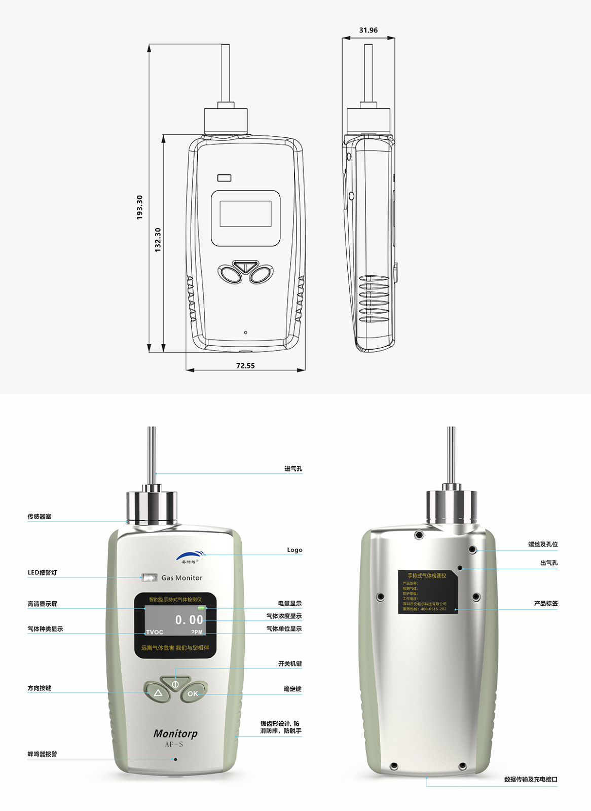 核心特点:沉淀10年的产品(更稳定更可靠);泵吸采样(检测速度快);大容量存储;