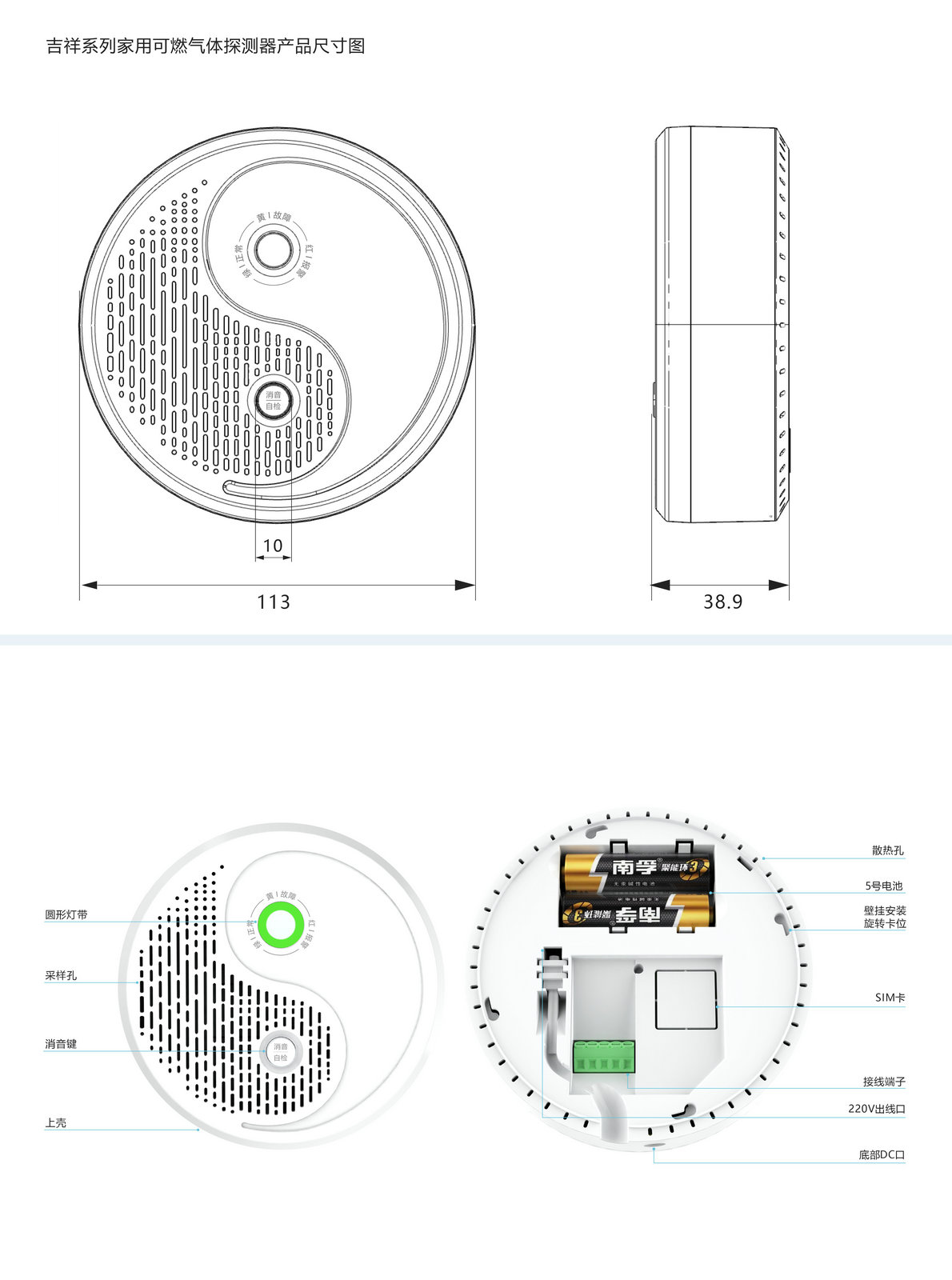 ☆ 支持语音AI控制指令(如:播报检测数据,播报电量,语音启动自检等),支持语音播报(如报警时播报:燃气泄漏,开门窗通风);