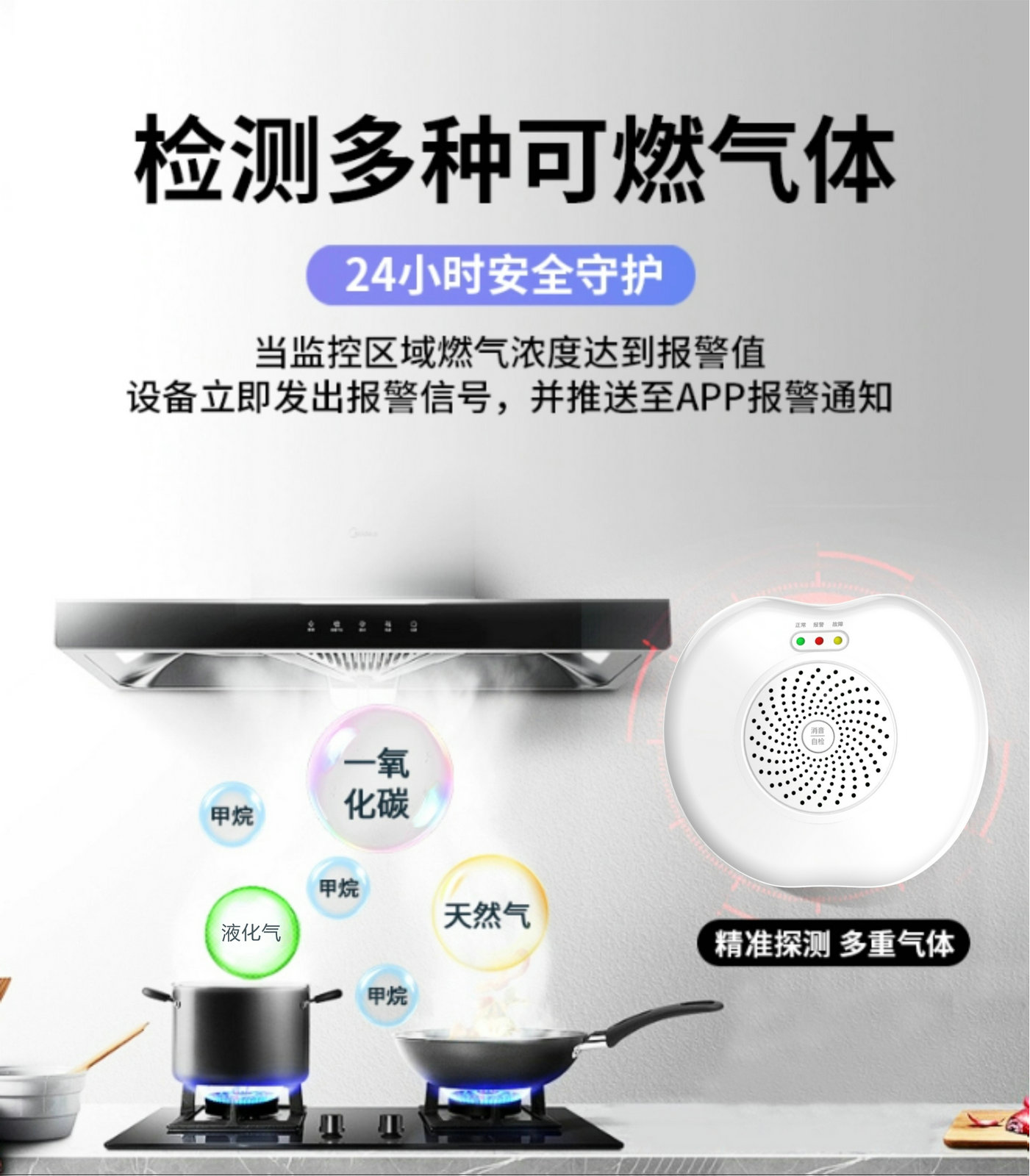 ☆ 支持语音AI控制指令(如:播报检测数据,播报电量,语音启动自检等),支持语音播报(如报警时播报:燃气泄漏,开门窗通风);