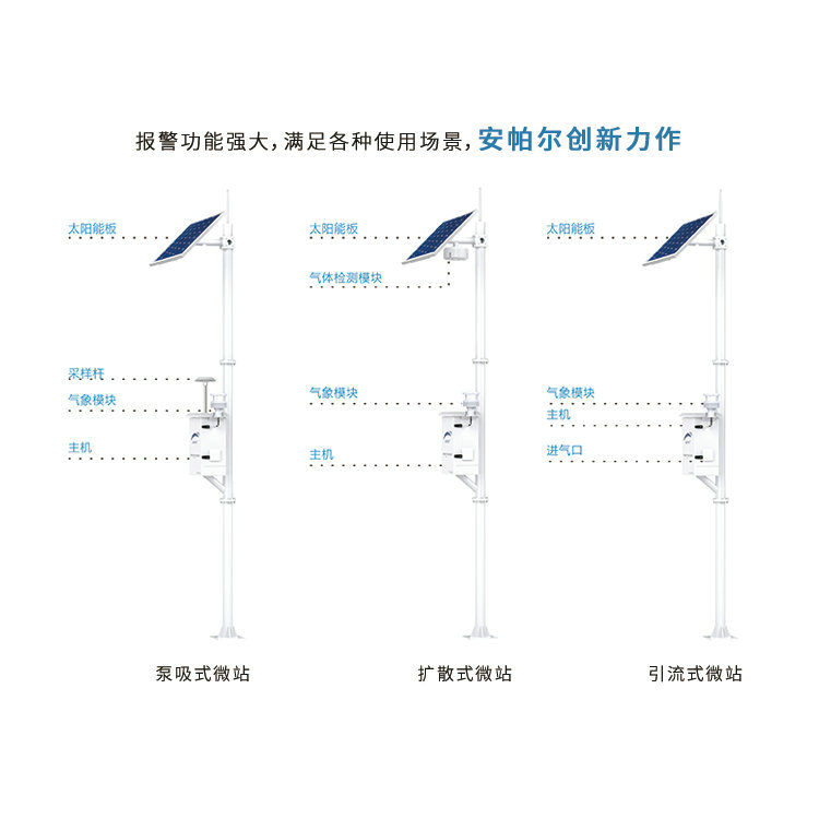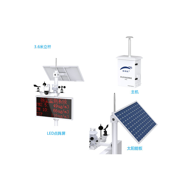 产品描述:星际系列扬尘在线监测系统是安帕尔推出的一款集成了强大的功能,能够实时监测PM2.5、PM10、TSP、温度、湿度、噪声、大气压力、风速和风向等环境监测因素。该设备不仅包括数据采集和传输功能,还具备系统平台管理和信息技术整合的能力。设备可配备LED点阵屏显示。视频监控功能支持视频叠加和超标抓拍,操作简便。设备还可通过太阳能供电,适用于道路扬尘、施工工地、沙石场、堆煤场、秸秆燃烧等扬尘污染源的排放监测,同时也适用于居民区、商业区和工业园区等地的环境空气质量在线实时监测。