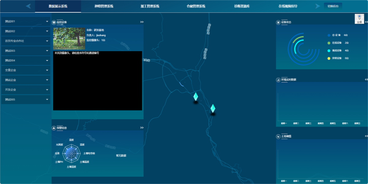 产品描述:智慧农业云平台整合智慧农业解决方案,农业环境在线监测预警,远程联动控制调控设备,农产品溯源系统。运用物联网技术对大田进行实时监测,光照、CO2、 土壤温湿度 、土壤PH值以及大田气候等环境进行数据采集,上传物联网云平台,进行大数据分析,并进行调控;科学化、智能化的监测和管理农业,可以在线查看数据和分析平台,实时性分析统计,提供监控报警数据分析等,实现农业智慧化。