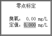 标定溶解臭氧电极的零点,标定前将电极轻轻地吸干,把电极置于无臭氧水中(如蒸馏水、纯净水等),操作仪表按ENTER键进入,然后按MENU菜单选择键弹出光标,按上下键修改,