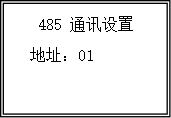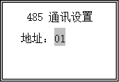 在参数设置菜单选择485通讯,按ENTER键进入485通讯菜单。按MENU菜单选择键弹出光标、移动光标,可以按上