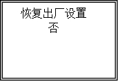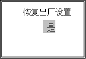 在参数设置菜单选择恢复出厂值,按ENTER键进入恢复出厂值菜单。按MENU菜单选择键弹出光标,可以按上下键进行修改。按ENTER键存储数据,按ESC键返回上一级菜单。